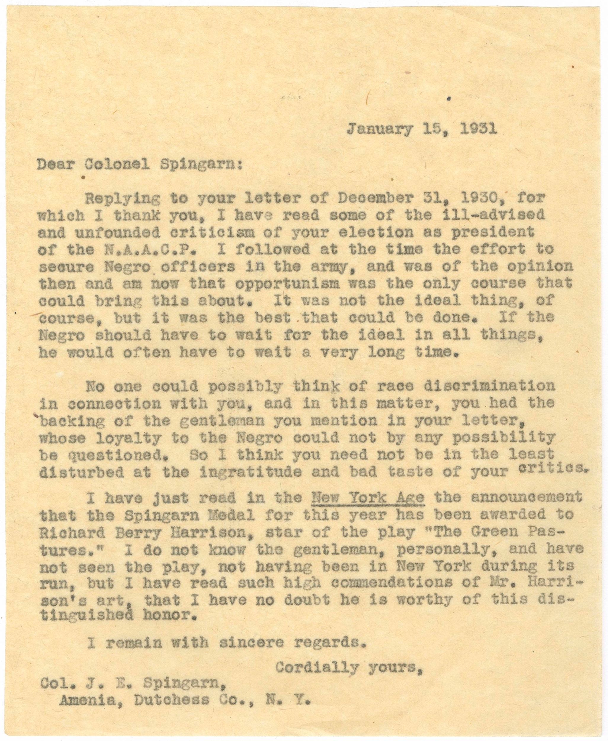 Dear Colonel Spingarn: