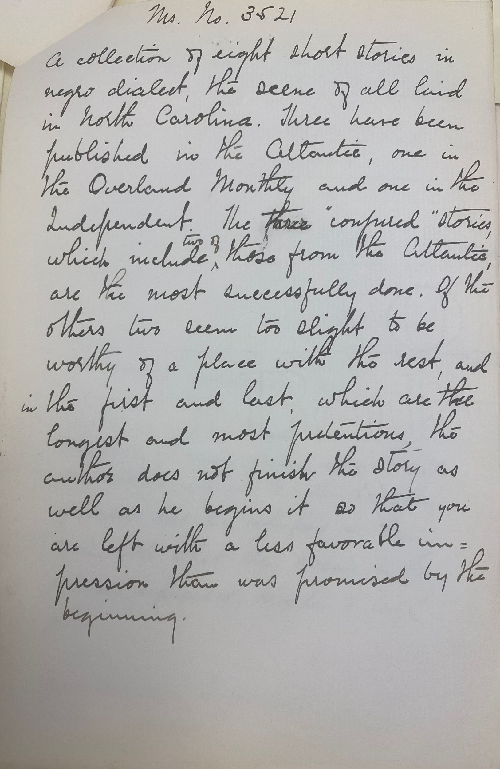 September 11, 1891–November 11, 1891, Houghton Library, Harvard University, Houghton Mifflin Company reader reports on manuscripts submitted for publication, MS Am 2516 (3521).