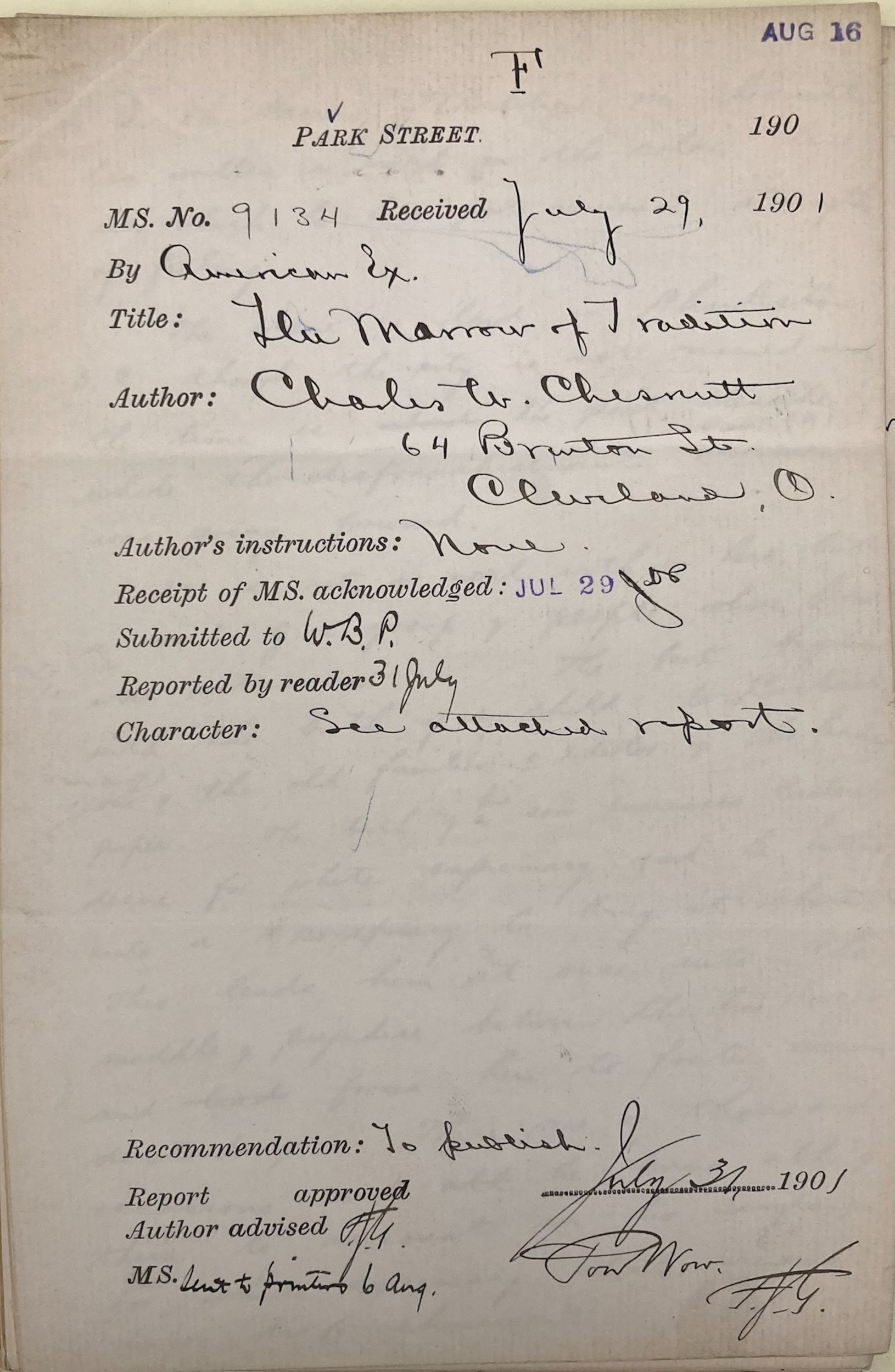 Houghton Mifflin readers' reports for The Marrow of Tradition,